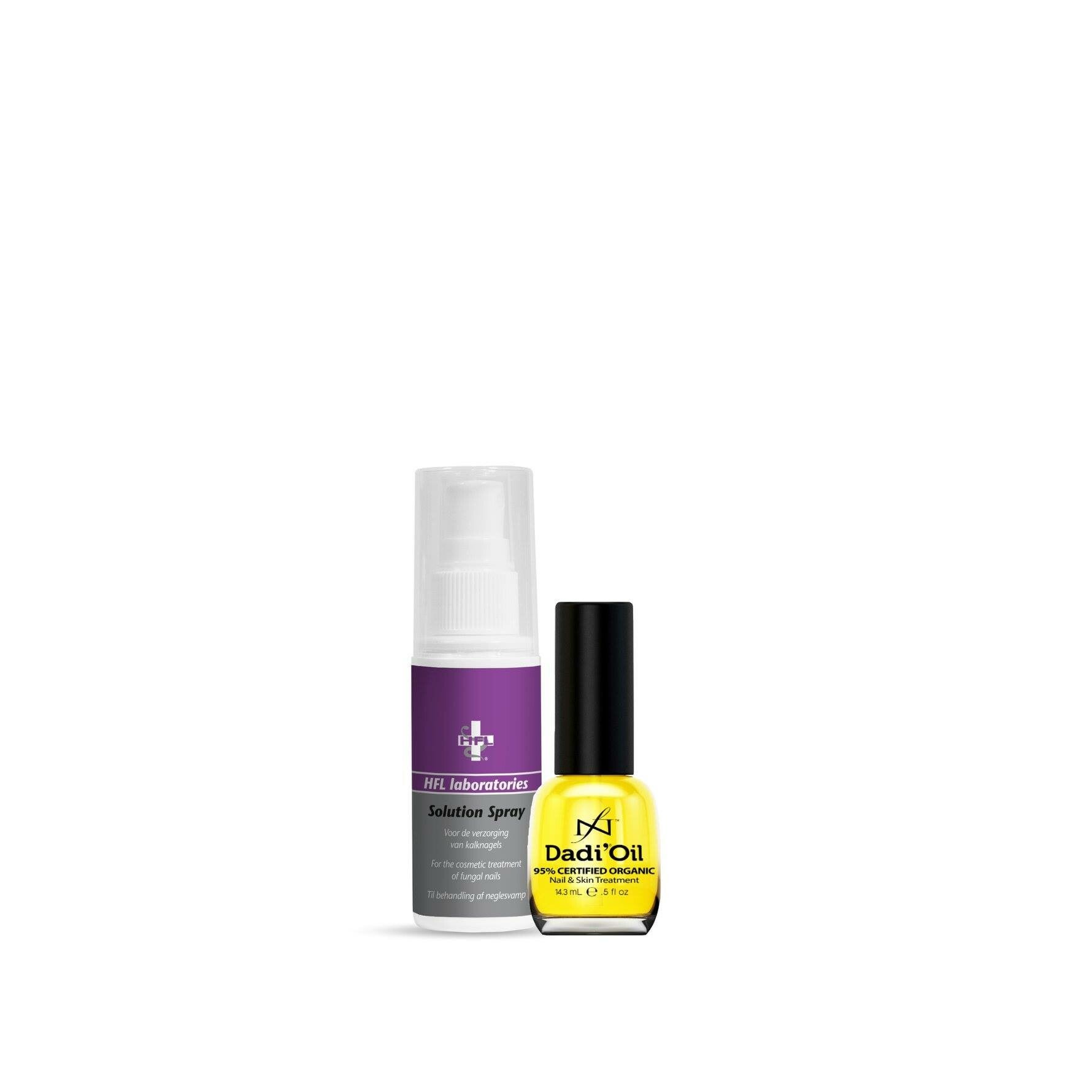 De solution spray is een uniek product. Het dringt door de nagel heen en komt op de plek waar de nieuwe cellen van de nagel onstaan. De Solution spray pakt daardoor in de gehele nagel de infectie aan. De Dadi oil trekt tevens in de nagel en maakt de nagel en de huid onder de nagel weer gezond. Door de aanwezigheid van de olie neemt de kans dat de schimmels en de bacteriën weer gaan huishouden drastisch af. Je kunt de Dadi oil ook voor trauma nagels of andere nagelafwijkingen gebruiken.